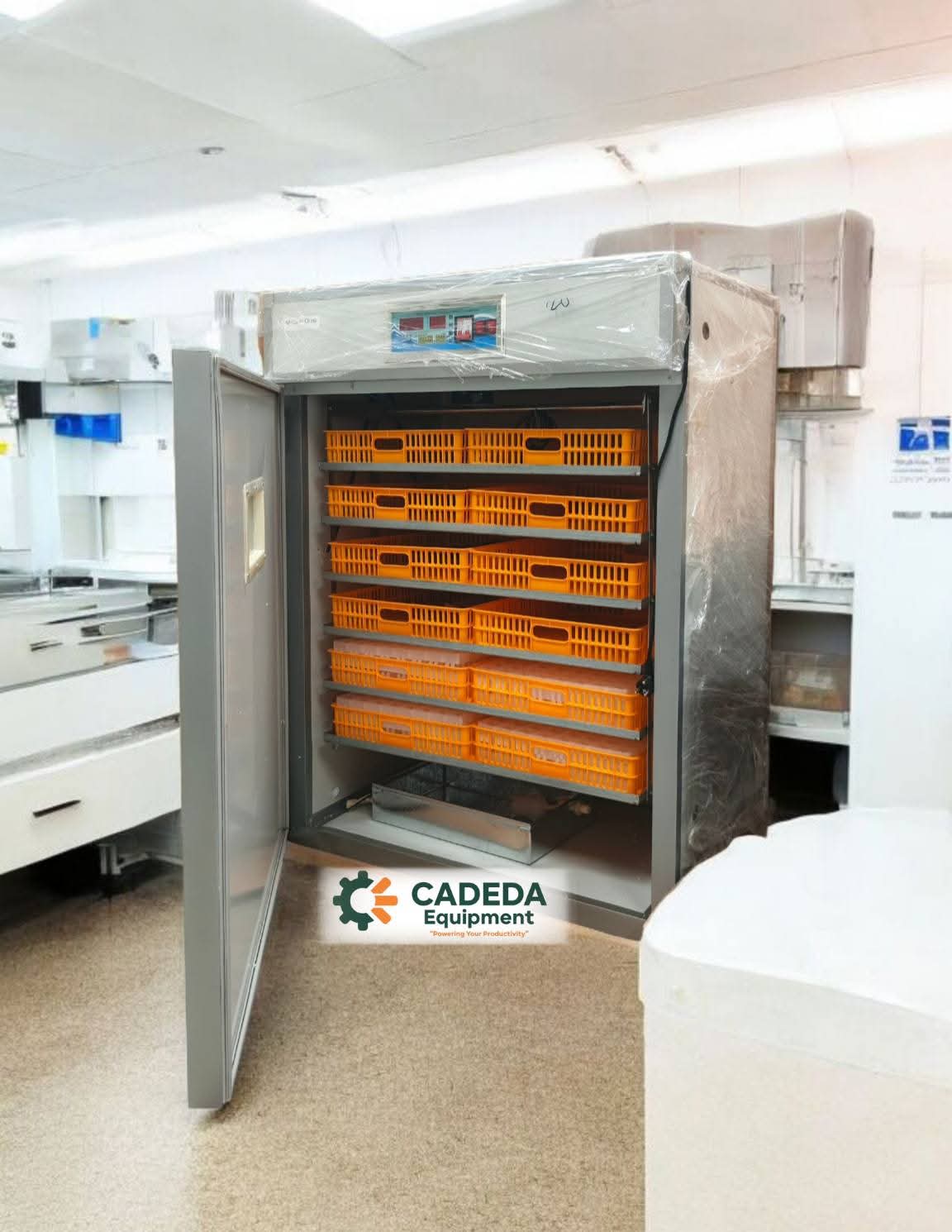 βBoost your poultry production with the 1056-Egg Fully Automatic Incubator & Hatcher, designed for maximum hatch rates, reliability and efficiency. This commercial-grade incubator is a complete hatchery solution that comes ready with all accessories to start hatching immediately.